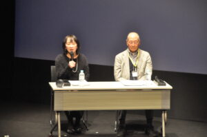 上映後再び高松さんと山田さんに登壇いただき、副音声ガイド制作に関する舞台裏のお話や苦労など伺った。今回の映画で俳優の台詞を担当した声優の方が、実際の台詞を生で実演して下さった。その声色に「おーっ!」という拍手が起こった。感情の込め方が素晴らしく、今観た映画の場面を想起させてくれた。台詞の少ない俳優の場合はボランティアが吹き替えを担当することもあり、また場面説明などの副音声は一人が担当し、感情を込めないで淡々と話すのだそうだ。